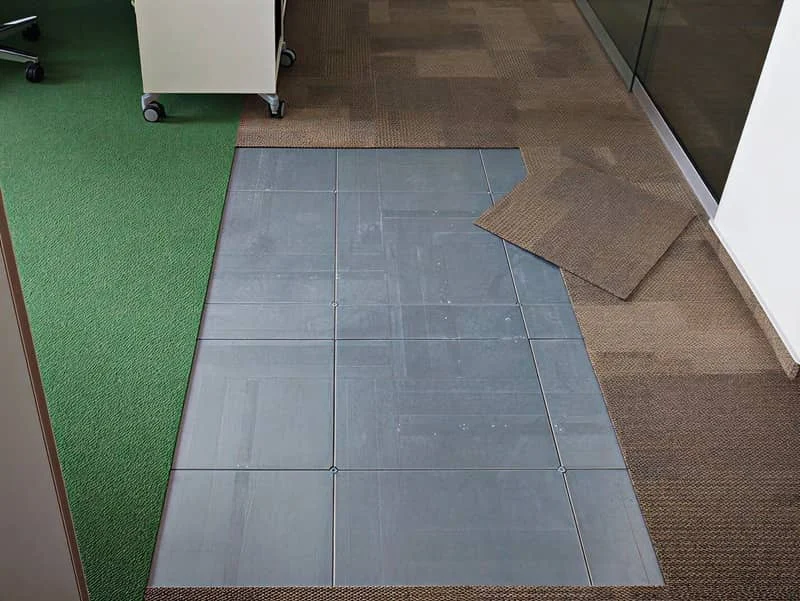 Very easy. The modular panel design allows any panel to be lifted without tools, giving immediate access to the cabling below. Reconfiguration requires no drilling or special equipment.